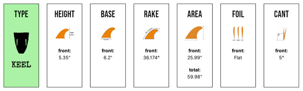 The CF Keel is a house made design that blends a balanced approach for retro twin trimming. The wider base and lightly swept outline creates hold, drive and makes for fast, smooth arcs on an open face.