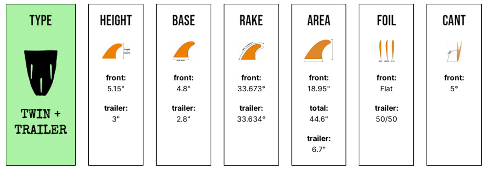Designed to be used as an alternative to traditional thrusters, this modern template with enhanced sweep and rake adds control and drive your performance twin or hybrid surfboards.