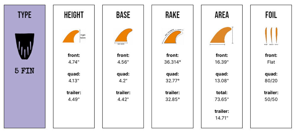 These moderately raked, larger based, and evenly sized thruster and quad fins are a great all-around addition for your modern quad or thruster shortboard. The center fin is a touch smaller adding a bit of release to your turns.