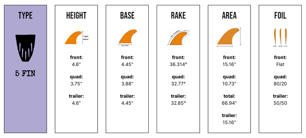 These moderately raked, larger based, and evenly sized thruster and quad fins are a great all-around addition for your modern quad or thruster shortboard. The center fin is a touch smaller adding a bit of release to your turns.