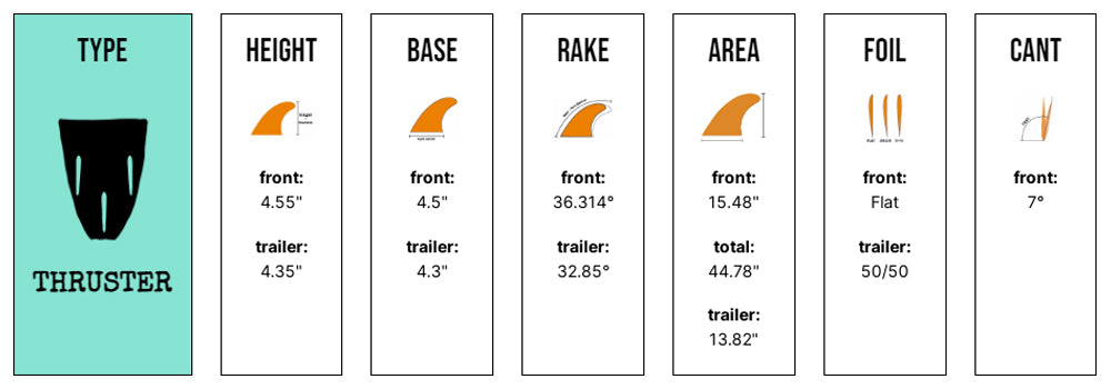 Based on our best selling CF-Medium template, Dion wanted to add his own touch with quality solid fiberglass construction for maximum speed and control. "I've always loved the flex and drive from fiberglass fins, the fiberglass maintains a nice flex when drawing out turns, but can still release quickly in tighter arcs and fin throws!"