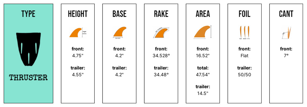 The Josh Hall Thruster is a single tab, reduced thruster template with an upright profile, reduced fronts, and a ¼" shallower back fin. This template will work well in any thruster set up from a modern shortboard to a modern longboard. This fin set is on the larger side. Packaging will say Large. "Slide the Glide" - Josh Hall