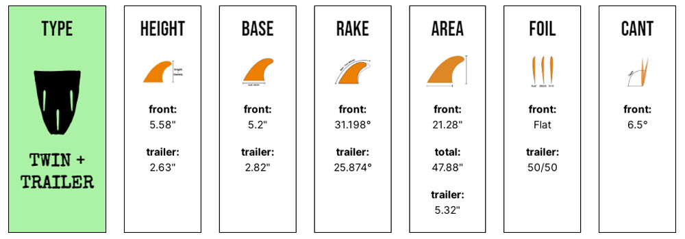 The Panda twin with trailer is a large, upright performance twin made in solid glass for a consistent controlled flex. This template has been designed to work in the Panda Shiitake and Dolly Dagger models or any modern performance twins to provide drive and control.